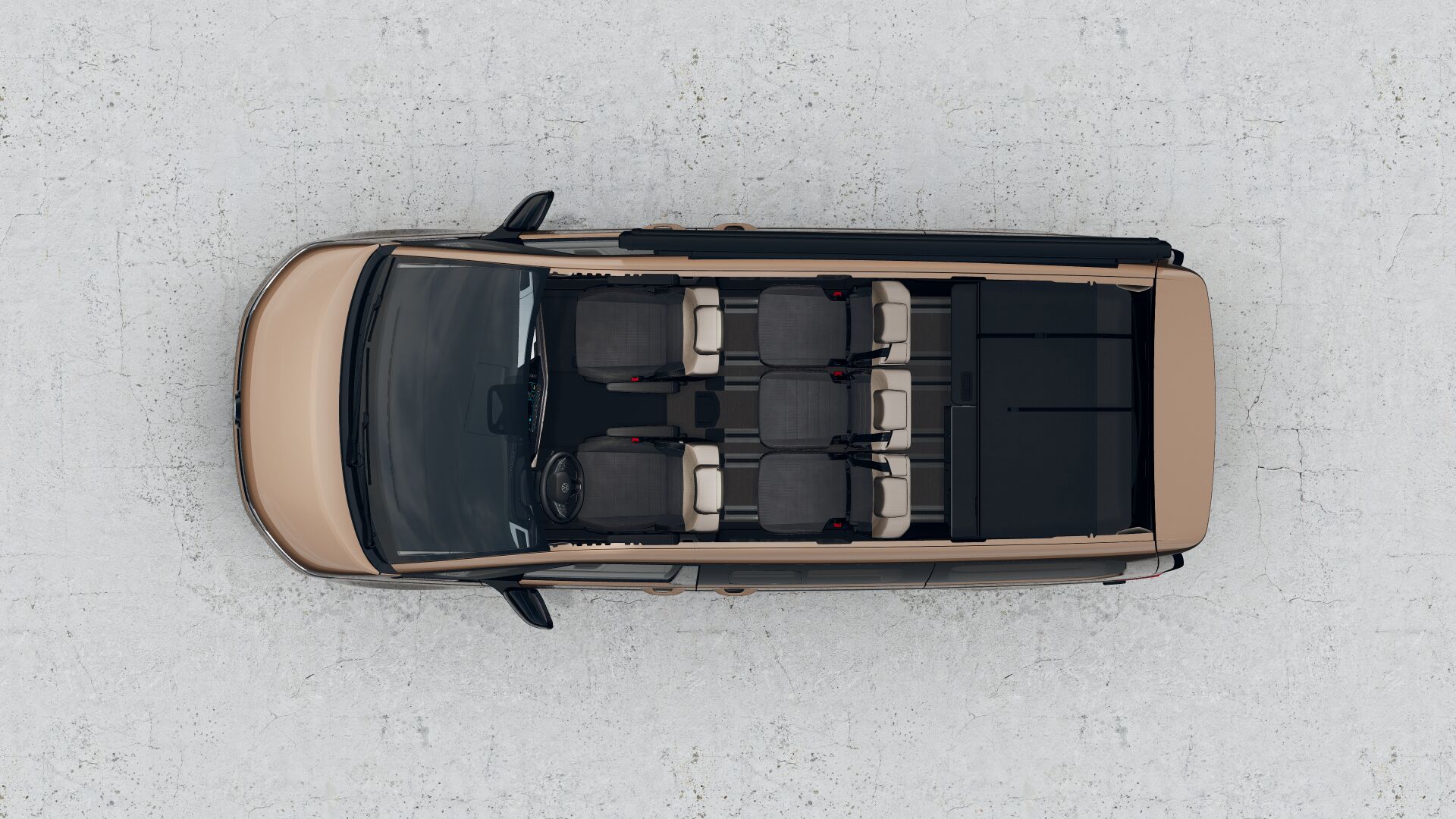 NOVÝ VŮZ, dodání 1Q/26, ceníková cena akčního modelu 2 096 000,- Kč, individuální barva Copper bronzová metalíza, Vyhřívání předních sedadel, Keyless entry/start & Safelock, Zatmavení vnitřního prostoru zatemňovací rolety s termoizolační funkcí látkové závěsy s magnety na boční okna v kabině řidiče, Asistenční systémy "Travel Assist", asistent udržení jízdního pruhu Lane Assist s Emergency Assist, Alarm s ochranou vnitřního prostoru, záložní houkačka senzor naklonění vozu, Nezávislé horkovzdušné topení pro dlouhodobý provoz, Vnitřní osvětlení pod výklopnou střechou, vnitřní osvětlení pod výklopnou střechou osvětlení v zadních výklopných dveřích, Telefonní rozhraní "Comfort", induktivní připojení telefonu na anténu rádia, induktivní dobíjení (kompatibilní s vybranými typy mobilních telefonů a jejich verzi hardwaru), Potahy sedadel "ArtVelour", potahy sedáků látkové (microfleece) bočnice v imitaci kůže, Markýza černá - vpravo montovaná na boku vozidla markýzové lišty na obou stranách černé, Paket TOP: LED světlomety vpředu IQ.LIGHT - LED Matrix (automatické nastavení sklonu, automatické přepínání mezi potkávacím a dálkovým svícením, LED světlomety pro špatné počasí s funkcí přisvěcování do zatáček) kombinovaná LED světla vzadu, zatmavená automatické nastavení sklonu světlometů klimatizace "Climatronic" (3zónová automatická klimatizace s dalším ovládacím panelem v prostoru pro cestující) vnitřní zpětné zrcátko s automatickou clonou dešťový senzor pro stěrače předního skla sluneční clony s kosmetickým zrcátkem, Trailer Assist+ Park Assist+ Parkpilot: zpětná kamera, dynamické vodící linky tažné zařízení s el. pojistkou, asistent pro couvání s přívěsem, Trailer Assist Park Assist Parkpilot vpředu a vzadu, Boční posuvné dveře se servodovíráním: servodovírání bočních posuvných dveří vlevo i vpravo